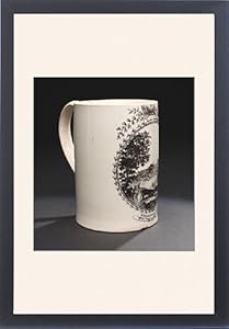 Product Description : Size: 30 x20 Framed Print30 x20 Framed Print, Black Satin Frame Off-White Digital Mat. showing Creamware mug. Creamware cylindical mug, printed in black with a view of Greenwich Hospital from the Isle of Dogs, within a circular medallion edged with foliage, surmounted by flags and an anchor. Inscribed below GREENWICH HOSPITAL/Where seaman prattle oer their former wars/And proudly shew their wooden legs and scars . The print is based on an engraving by W. a J. Walker