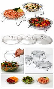 Product Description : : Set an impressive spread for your guests with this buffet server set. The clear acrylic finish of the bowls and lids makes it easy to see contents; durable construction make the set suitable for both indoor and outdoor entertaining. The varying heights of the chrome-plated stands keep bowls at different levels for a less crowded-looking table.Set of 9: 1 standard bowl (12?"