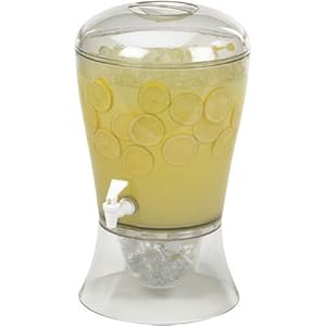 Product Description : Amazon.com Product Description : Serve cold beverages with ease indoors or out. The lightweight acrylic design is easy to transport and will not break if accidentally tipped over. The design features a compartmentalized base that can be filled with ice for additional cooling. And it's easy to fill the container with a favorite beverage, since it features a wide mouth and removable lid. The lid's handle makes it easy to lift off for adding more ice, fruit, or sweeteners when needed. Amply sized to hold 3 gallons, the container features a no-drip, easy-pull spout for dispensing. Great for parties or everyday use, the beverage dispenser makes a great gift for newlyweds or new homeowners. Hand wash and rinse for easy care. Product Description : Acrylic 3 Gallon Beverage Dispenser Will not break if it tips over, making it just as safe and easy to serve cool, refreshing beverage. Lighter fortransporting. Just lift off top with handle and add your favorite beverage, ice, fruit or sweeteners. Features no-drip, easy pull spout for dispensing. Great for parties or everyday use.