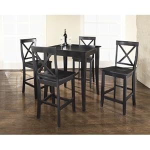 Product Description : KD520001BK Features: -Barstool has 'X' shape back for comfort.-Table has carved cabriole style legs.-ISTA 3A certified. Includes: -Set includes pub table and four barstools. Construction: -Constructed of solid hardwood and veneer. Color/Finish: -Hand rubbed multi-step black finish. Assembly Instructions: -Assembly required. Dimensions: -Seat height: 24''.-Barstool dimensions: 40'' H x 18.5'' W x 22.5'' D.-Pub table dimensions: 36'' H x 32'' W x 32'' D. Warranty: -Manufacturer provides a 3 month warranty against defects in material and workmanship.