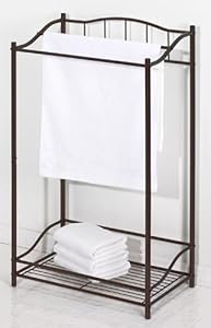 Product Description : : When you need a little extra space to hang towels, but don?t care for the plain bar on a wall option, may we suggest this attractive and useful standing towel butler for the floor. The dark metal goes well with natural tones, muted colors and is a great contrast for light shades of paint and paper. Bronze finish. 19 by 11 by 32-inch.