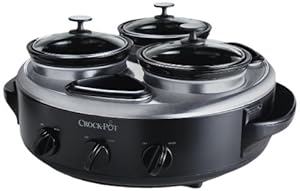 Product Description : Be the hostess with the mostest, whether you are entertaining at home or on-the-go. This travel-friendly entertainer includes a travel strap to hold the lids in place so you can arrive to the party mess-free. Three removable stoneware crocks with individual temperature settings hold up to 1 quart each. The party can always be arms-length away from the appetizers and dips by using the lazy susan for easy access. Removable stoneware and glass lids are dishwasher safe to keep party clean-up to a minimum. Introducing the Crock-Pot? Triple Dipper. Entertaining just doesn