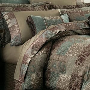 Product Description : : Size: California KingIndulge in exquisite beauty, brought about in this lavish patchwork jacquard, abundantly rich in style, color and fabrication. The comforter, standard shams, and decorative pillows feature an impressive combination of paisley, damask, diamond, and lattice