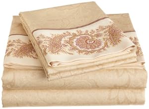 Product Description : : Invite a fantasy collage of flowers and foliage into your bedroom with the Olympia collection. Olympia's woven Jacobean comforter and shams feature hardy vines, stylized blossoms and vines sprouting among wildflowers and leaves in shades of burnt umber, mauve and antique gold on a champagne-ivory base finished with a multi-colored twist cord. Sheet sets complement this ensemble with a printed watermark floral paisley design, and a color coordinated printed attached hem found on the pillowcases and flat sheet. Ornament your ensemble with Olympia's collection of decorative pillows. The square pillow features the same motif as the comforter and shams and is finished with a multi-color twist cord. Olympia's fashion pillow adds interest with its ruched mitered corners and overlapping gimp in a diamond patterned complete with tassel trim. The boudoir pillow states simple elegance with mauve silk-like fabric framing the floral center motif with gimp and tassel fringe details. Add Olympia's 84-inch draperies and prima valance to complete this ensemble.
