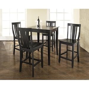 Product Description : KD520002BK Features: -Barstool has shield shape back for comfort.-Table has carved cabriole style legs.-ISTA 3A certified. Includes: -Set includes pub table and four barstools. Construction: -Constructed of solid hardwood and veneer. Color/Finish: -Hand rubbed multi-step black finish. Assembly Instructions: -Assembly required. Dimensions: -Seat height: 24''.-Barstool dimensions: 40'' H x 18.5'' W x 22.5'' D.-Pub table dimensions: 36'' H x 32'' W x 32'' D. Warranty: -Manufacturer provides a 3 month warranty against defects in material and workmanship.